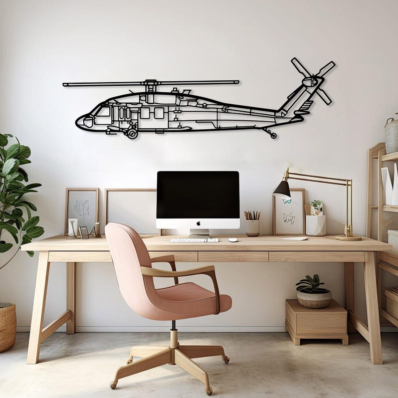 Black Hawk Helicopter Metal Wall Art – Military Aviation Decor
