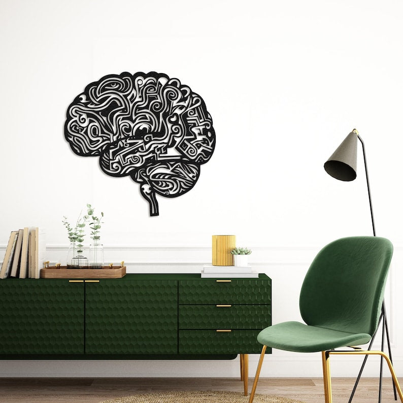 Dive into creativity with this Brain Maze Metal Art, a fusion of science and modern design ideal for offices or classrooms.Specifications: 2 mm matte steel, weatherproof, elevated 1 cm (0.4").