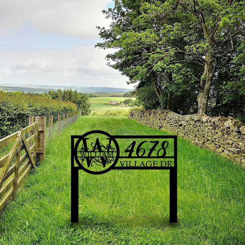 Mark your home with elegance using this Custom Address Metal Stake Sign, featuring your initials or family name.Specifications: Laser cut from 2 mm steel, matte finish, includes durable garden stake.
