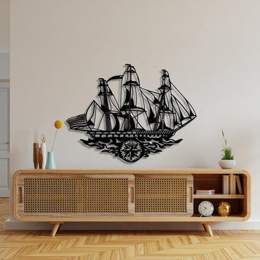Metal Sailing Ship Wall Art – Nautical Compass Home Decor