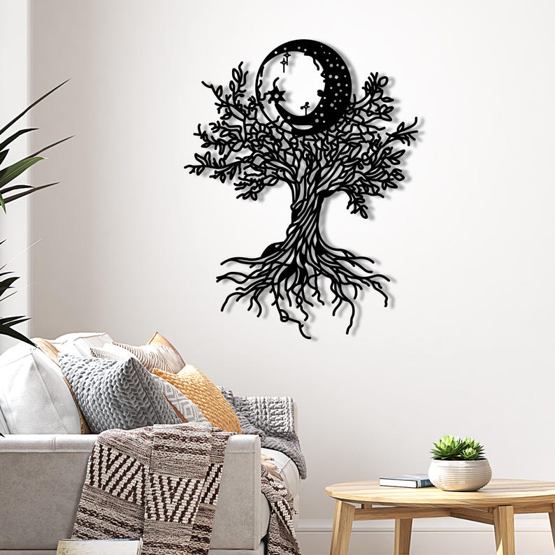 Moonlit Tree of Life Metal Wall Art – Bohemian Wall Sculpture