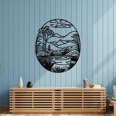 Bring the calm of the wilderness into your home with this Mountain Lake Metal Wall Art, an inspiring piece for living rooms and cabins.Specifications: 2 mm matte-coated steel, rustproof, ready to hang.