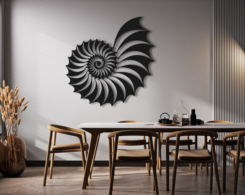 Celebrate the elegance of nature’s perfection with this Fibonacci Sea Shell Metal Wall Art, a stunning geometric sculpture.Specifications: 2 mm matte-coated steel, rustproof, ready to hang.