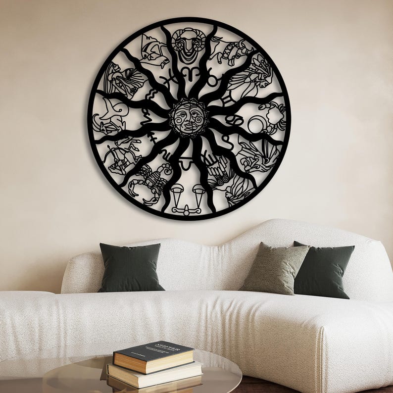 Embrace cosmic elegance with this Zodiac & Sun Metal Art, designed for astrology lovers and modern dreamers.Specifications: 2 mm matte-coated steel, rustproof, ready to hang.