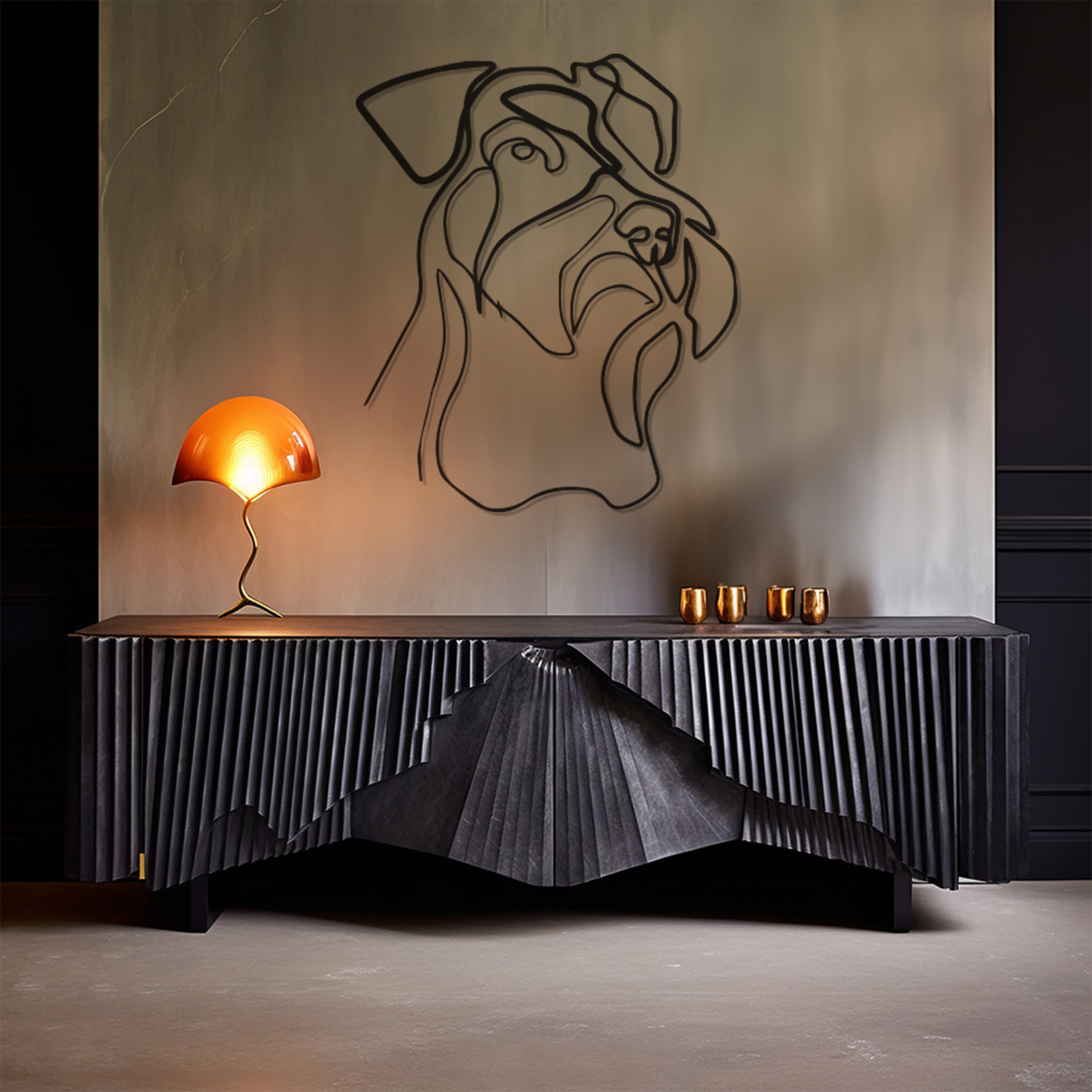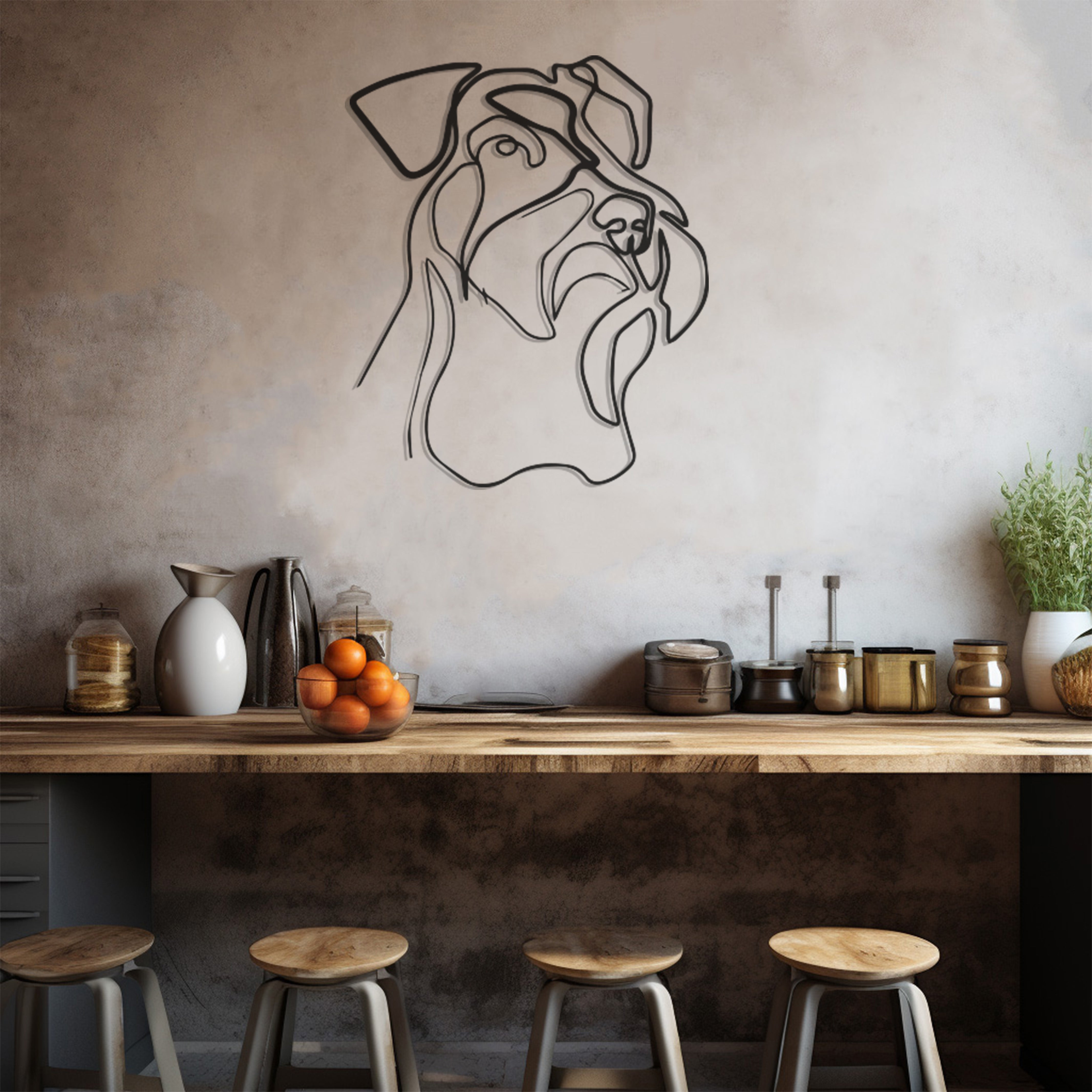 Discover the essence of bespoke decor with our Dog Line Art Metal Wall Art Decor, intricately designed to provide a fusion of style and craftsmanship. Each piece is a culmination of detailed artistry and high-quality materials, resulting in a durable artwork that enhances any space it occupies. This metal wall art invites a touch of sophistication and modernity to your home or office, offering a bold statement that resonates with the contemporary design enthusiast. From the stunning visuals to the impeccable finish, this piece promises to transform your wall into a gallery of modern elegance. Its versatility makes it an excellent choice for a variety of settings, enabling it to fit seamlessly into your existing decor or become the centerpiece of a new design project. Elevate your environment with this unmatched wall art, a representation of your refined taste and commitment to quality.