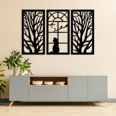 Metal Cat Window Wall Art – Cats on Branches Set of 3