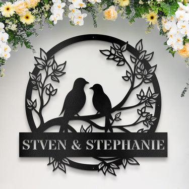 Personalized Bird Art Metal Sign – Custom Wedding Gift Wall Decor