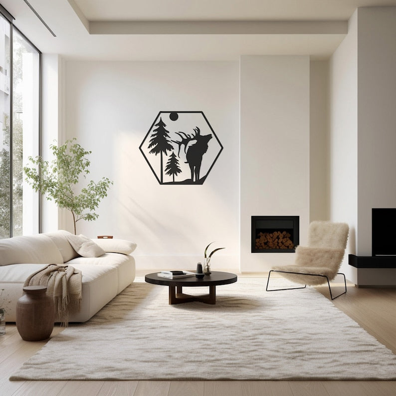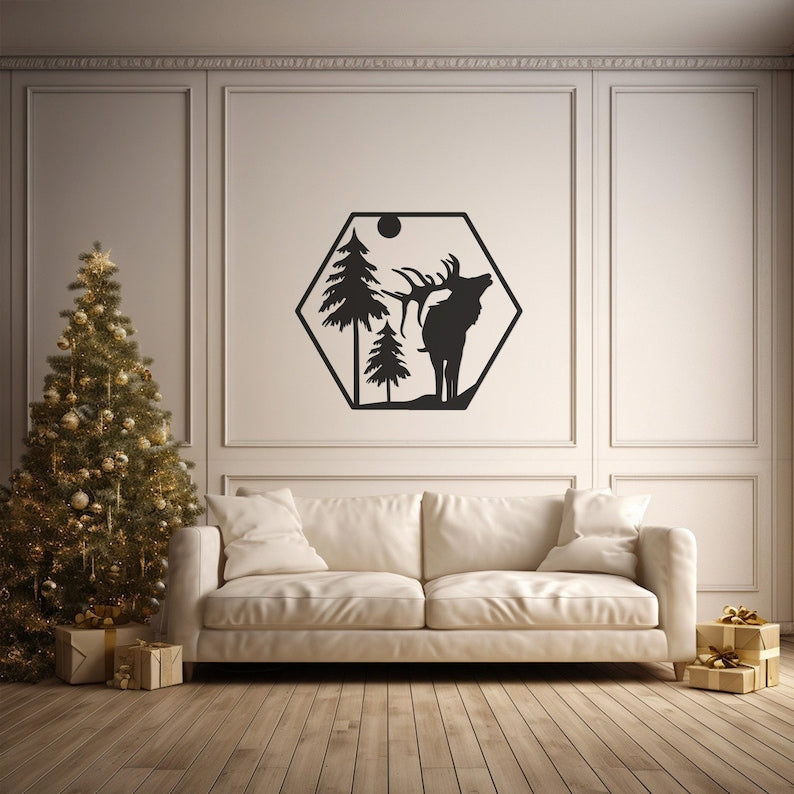 Rustic Deer Metal Wall Art for Christmas Decor, Living Room - Festive Holiday Wall Accent
