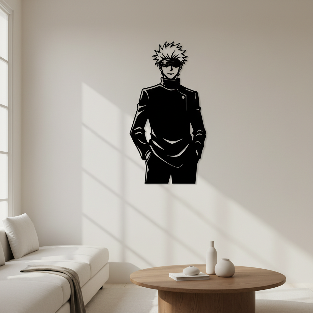This stylish silhouette captures the confident, almost casual stance of someone who knows they cannot be defeated. The iconic blindfold and fashionable appearance have made this character a modern anime icon. Perfect for fans of contemporary anime and supernatural action.
