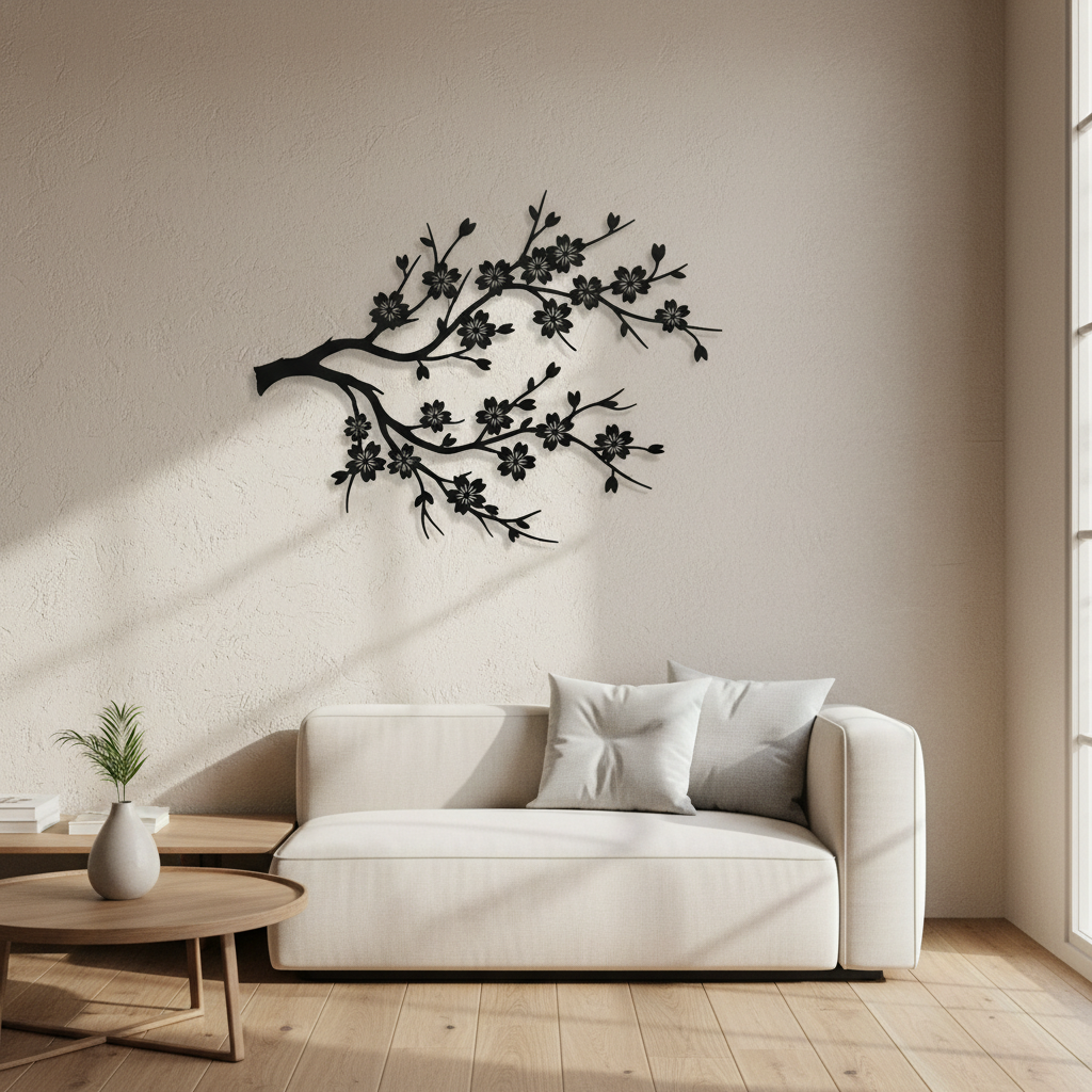 This delicate metal wall art captures a graceful branch of sakura with blossoms in full bloom, bringing the serene beauty of a Japanese spring to your space year-round. The organic curves and natural forms create a peaceful, contemplative atmosphere. Ideal for bedrooms, meditation spaces, or anywhere you want to add a touch of natural elegance.