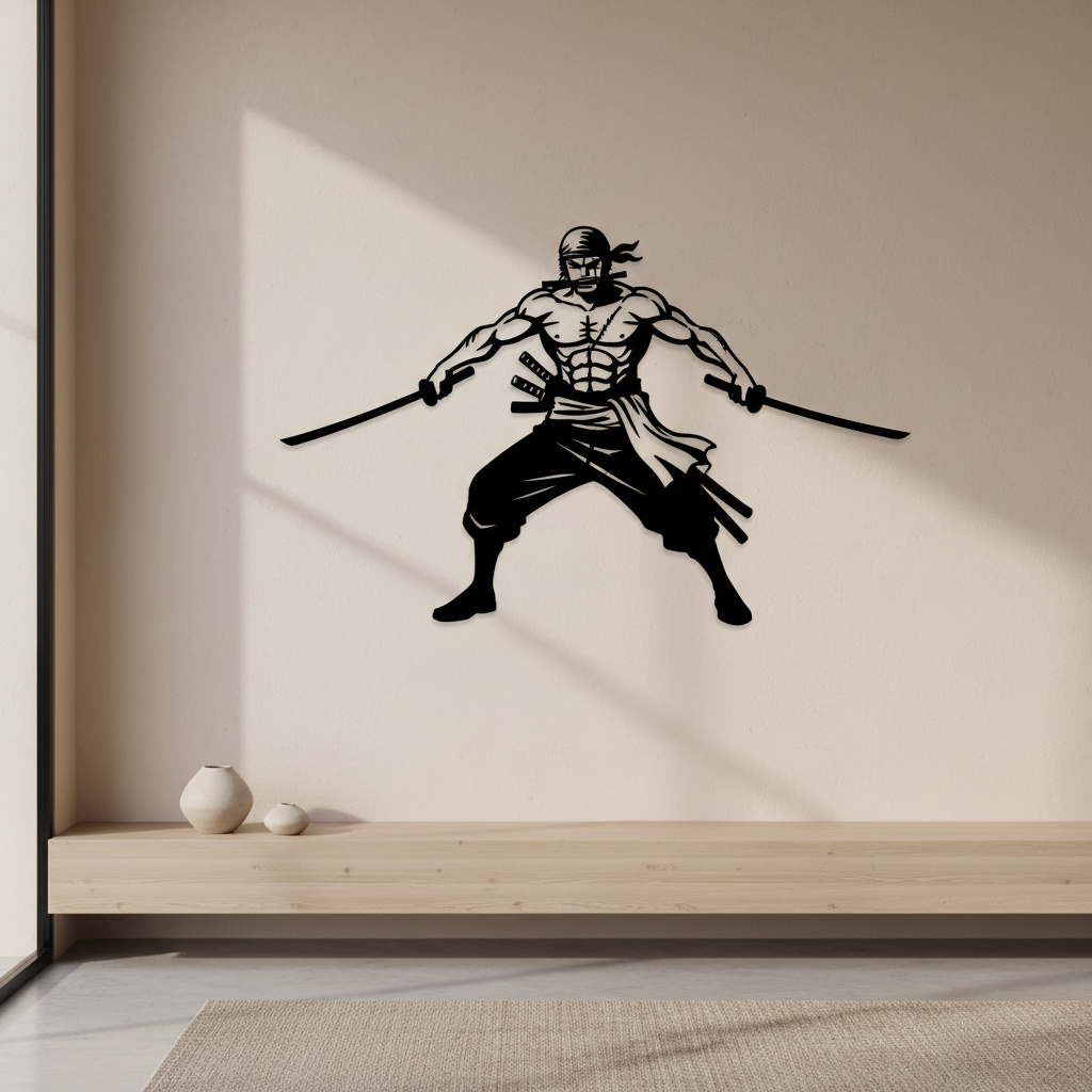 The legendary three-sword fighting style brought to life in metal. This fearless swordsman dreams of becoming the world's greatest, training relentlessly and never backing down from any challenge. His unique combat style with a blade in each hand and one clenched in his teeth has become iconic in anime.