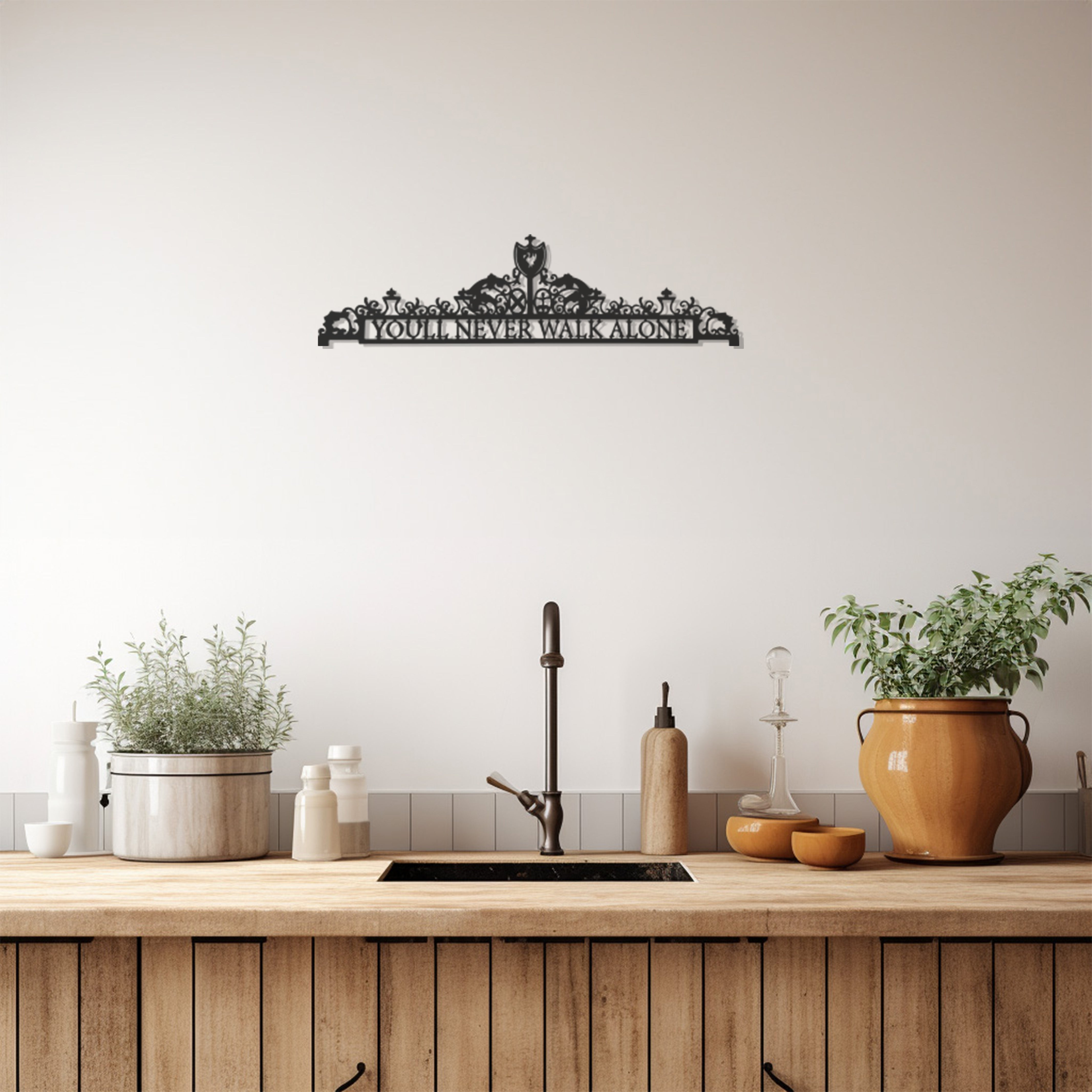 Discover the essence of bespoke decor with our Youll Never Walk Alone Metal Wall Art Decor, intricately designed to provide a fusion of style and craftsmanship. Each piece is a culmination of detailed artistry and high-quality materials, resulting in a durable artwork that enhances any space it occupies. This metal wall art invites a touch of sophistication and modernity to your home or office, offering a bold statement that resonates with the contemporary design enthusiast. From the stunning visuals to the impeccable finish, this piece promises to transform your wall into a gallery of modern elegance. Its versatility makes it an excellent choice for a variety of settings, enabling it to fit seamlessly into your existing decor or become the centerpiece of a new design project. Elevate your environment with this unmatched wall art, a representation of your refined taste and commitment to quality.