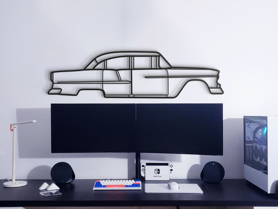 This Bel Air 1955 Metal Silhouette Wall Art will turn any car enthusiast's home, garage, hallway, living room, bedroom, or office into a unique space, add a stylistic look and captivate petrolheads as well as visitors.