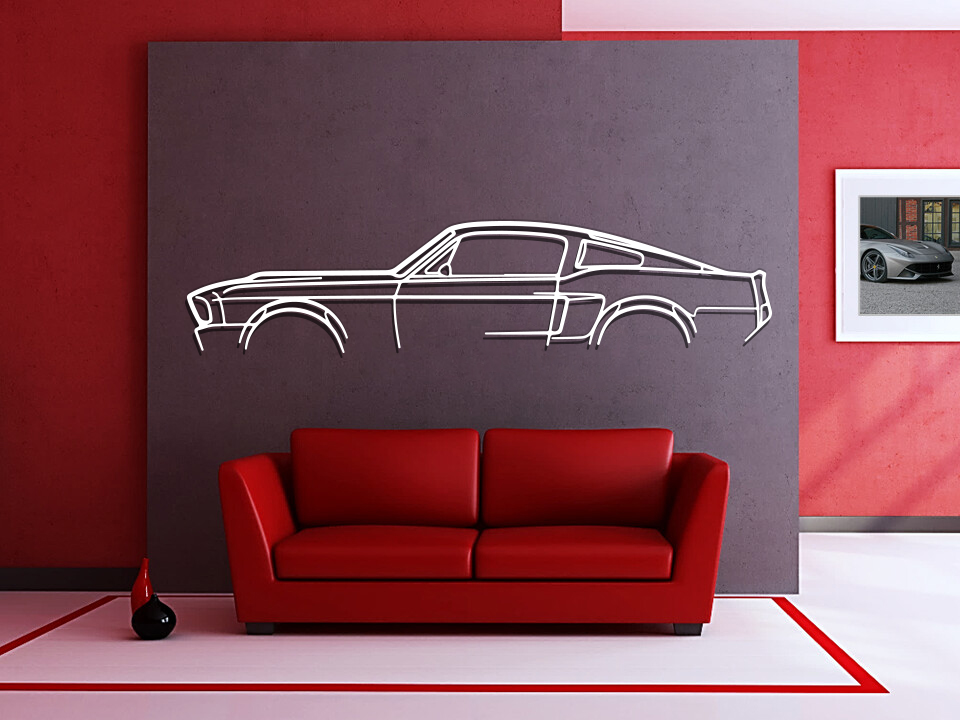 This 1967 Mustang Metal Silhouette Wall Art will turn any car enthusiast's home, garage, hallway, living room, bedroom, or office into a unique space, add a stylistic look and captivate petrolheads as well as visitors.