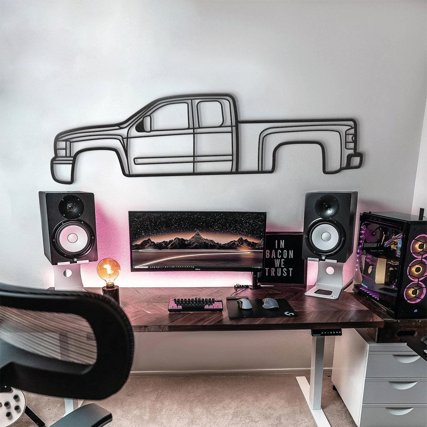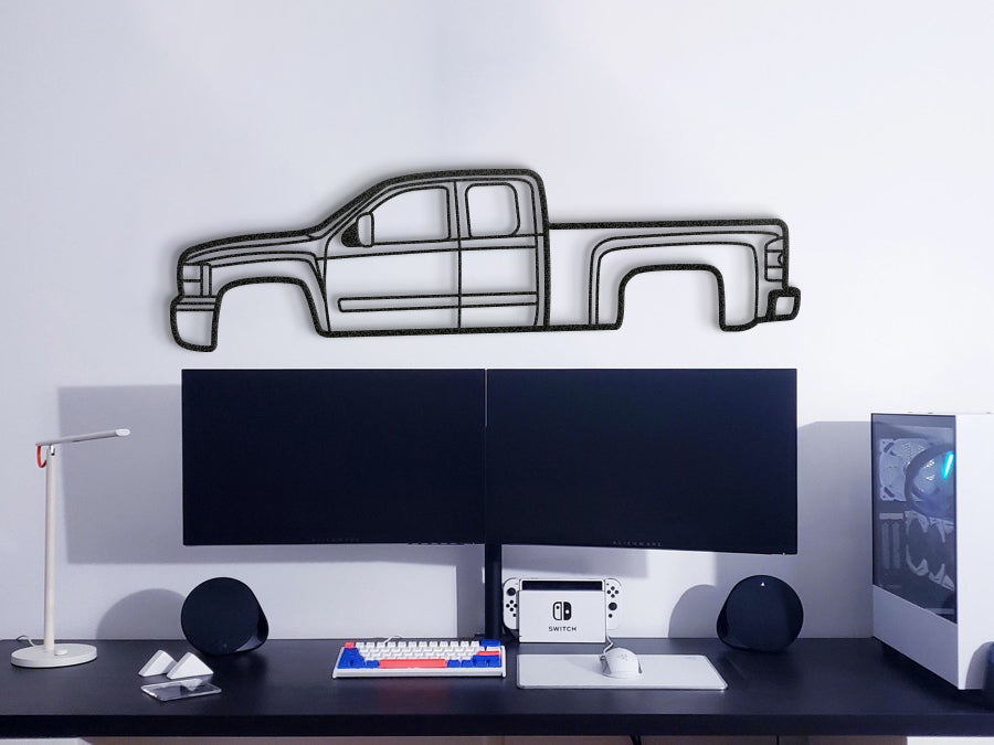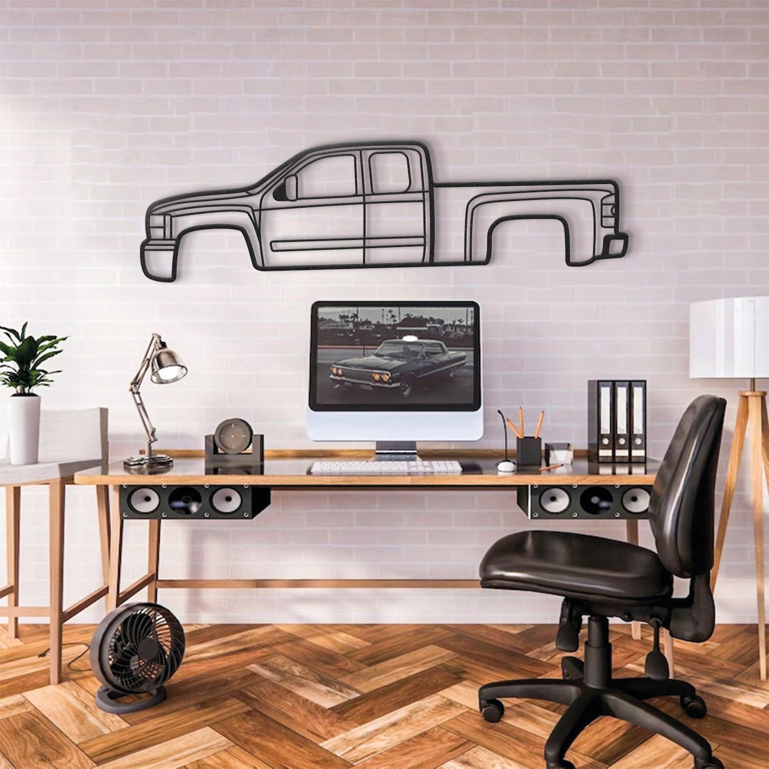 This 2007 Silverado 2500HD Metal Silhouette Wall Art will turn any car enthusiast's home, garage, hallway, living room, bedroom, or office into a unique space, add a stylistic look and captivate petrolheads as well as visitors.