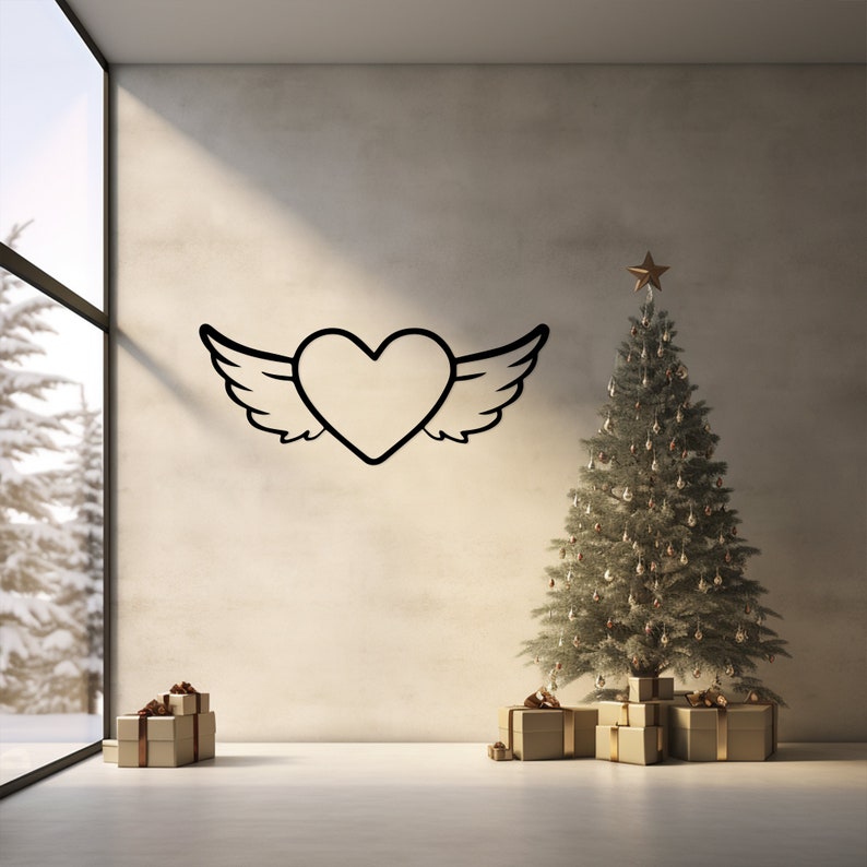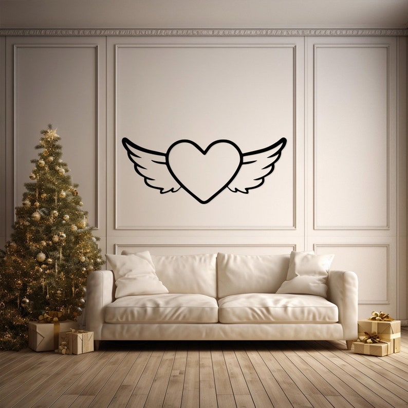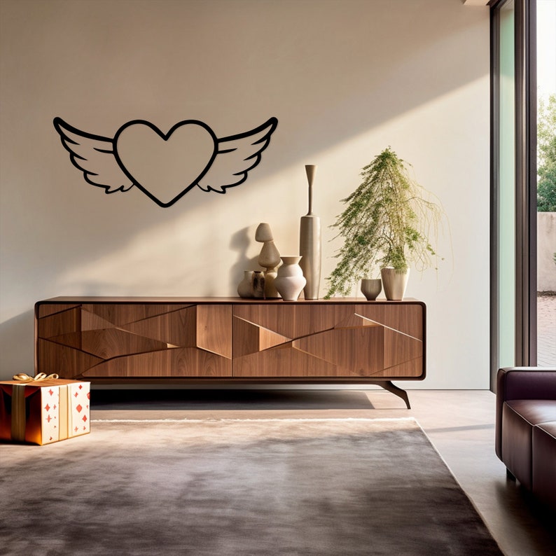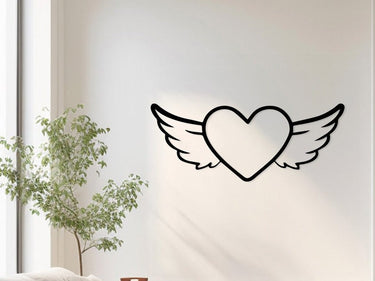 Winged Heart Metal Wall Art for Romantic Decor, Bedroom - Love Symbol