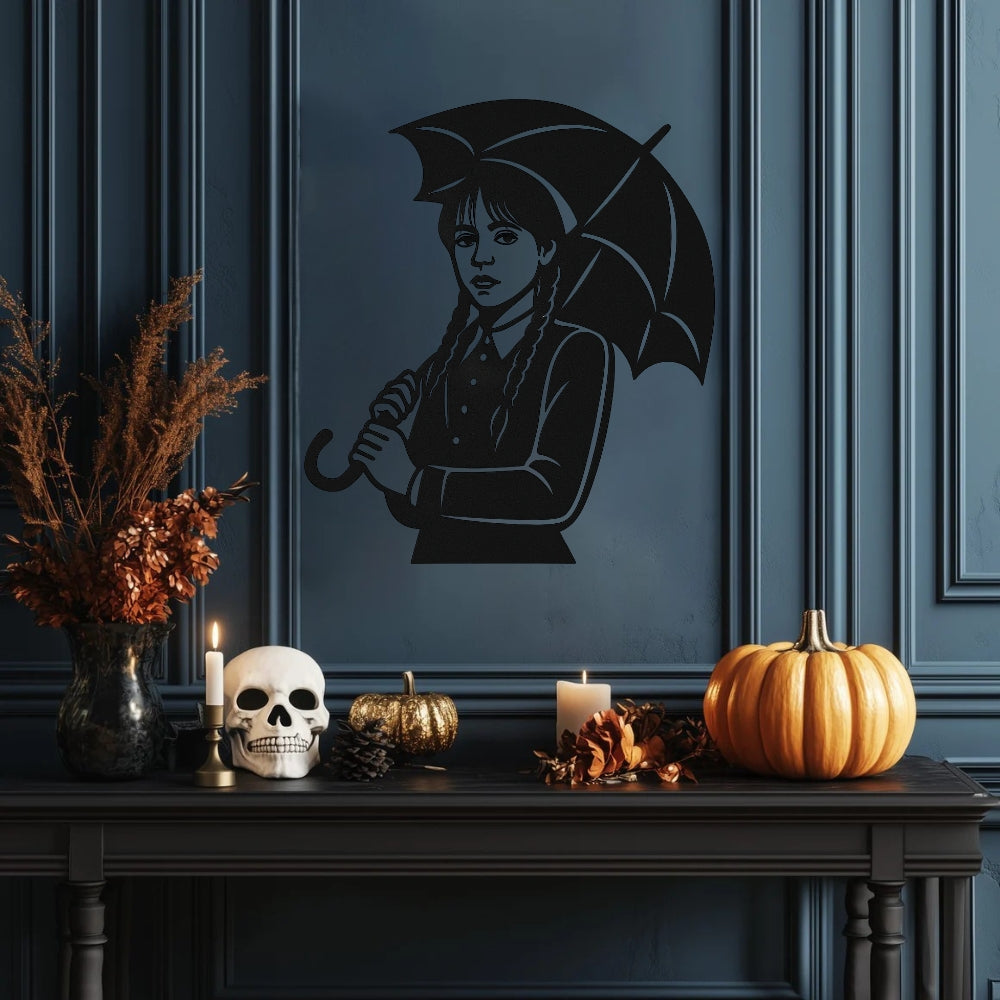 Discover the essence of bespoke decor with our Wednesday with Umbrella Metal Wall Art, intricately designed to provide a fusion of style and craftsmanship. Each piece is a culmination of detailed artistry and high-quality materials, resulting in a durable artwork that enhances any space it occupies. This metal wall art invites a touch of sophistication and modernity to your home or office, offering a bold statement that resonates with the contemporary design enthusiast. From the stunning visuals to the impeccable finish, this piece promises to transform your wall into a gallery of modern elegance. Its versatility makes it an excellent choice for a variety of settings, enabling it to fit seamlessly into your existing decor or become the centerpiece of a new design project. Elevate your environment with this unmatched wall art, a representation of your refined taste and commitment to quality.