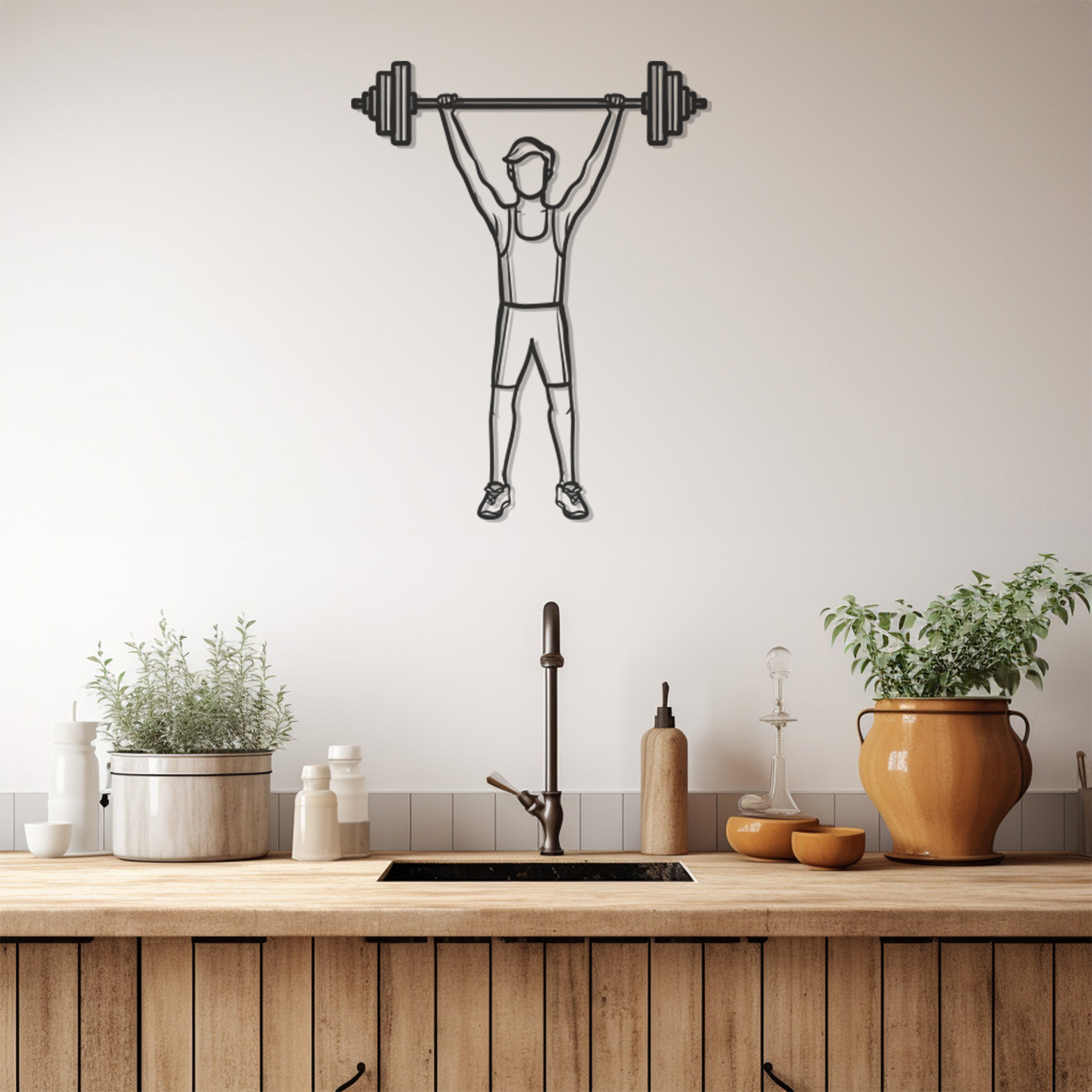 Discover the essence of bespoke decor with our Man Lifting Weights Metal Wall Art, intricately designed to provide a fusion of style and craftsmanship. Each piece is a culmination of detailed artistry and high-quality materials, resulting in a durable artwork that enhances any space it occupies. This metal wall art invites a touch of sophistication and modernity to your home or office, offering a bold statement that resonates with the contemporary design enthusiast. From the stunning visuals to the impeccable finish, this piece promises to transform your wall into a gallery of modern elegance. Its versatility makes it an excellent choice for a variety of settings, enabling it to fit seamlessly into your existing decor or become the centerpiece of a new design project. Elevate your environment with this unmatched wall art, a representation of your refined taste and commitment to quality.
