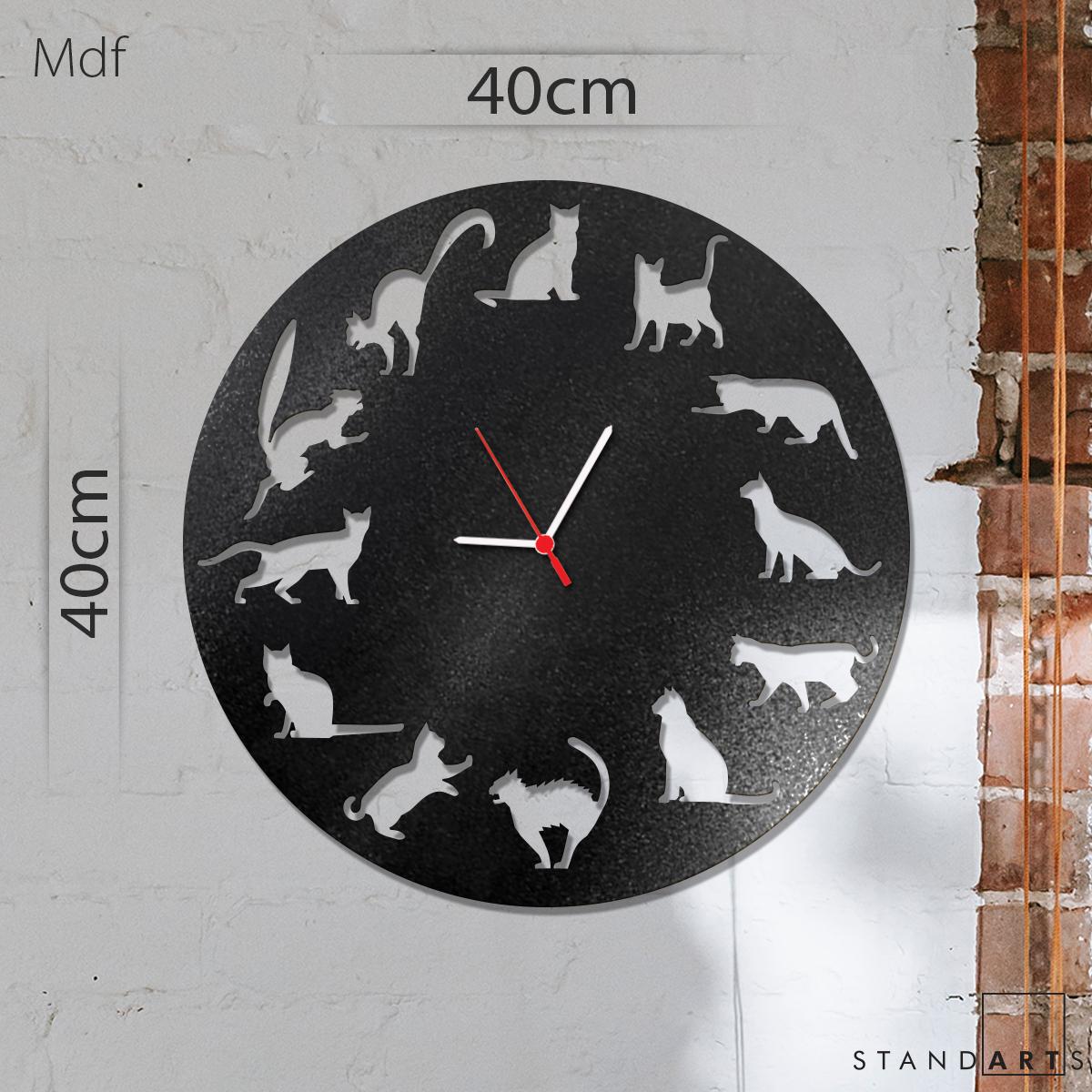 Standing out with its modern and aesthetic design, this Cat-themed laser-cut 3mm Black MDF wall clock adds a stylish and elegant touch to any decor. Crafted with precision laser-cutting technology, these clocks are produced in a variety of concepts, from minimal to detailed, appealing to every taste. The modern and elegant look of the black MDF creates a strong contrast in any space, creating a striking appearance. The silent clock mechanism ensures comfortable use in homes, offices, workspaces, and living spaces. Its durable construction and timeless design ensure years of use as a decorative and functional accessory. Combining elegance and simplicity, these special wall clocks make a wonderful gift for both yourself and your loved ones.