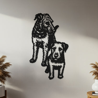 The art itself is laser cut from 2 mm thickness steel. It is textured, dyed, and powder coated with a matte finish. Our products include elevation screws that lift the art piece 1 cm - 0.4" inches away from the wall and provide a 3D stylistic look!