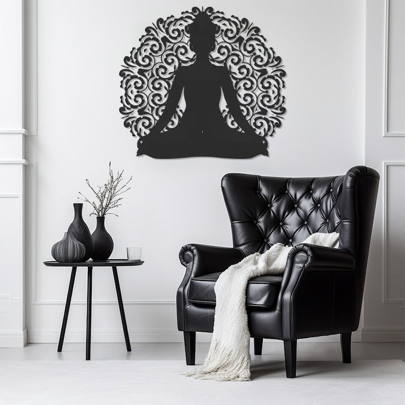 Zen Yoga Wall Art,Serene Meditation Scene Metal Decor