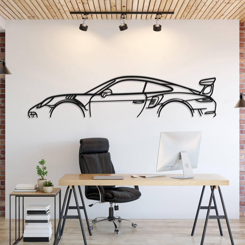 This 911 GT3 RS Model 991 Metal Silhouette Wall Art will turn any car enthusiast's home, garage, hallway, living room, bedroom, or office into a unique space, add a stylistic look and captivate petrolheads as well as visitors.