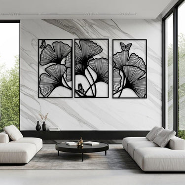 Ginkgo Leaf Metal Wall Art Set of 3 – Modern Geometric Nature Decor