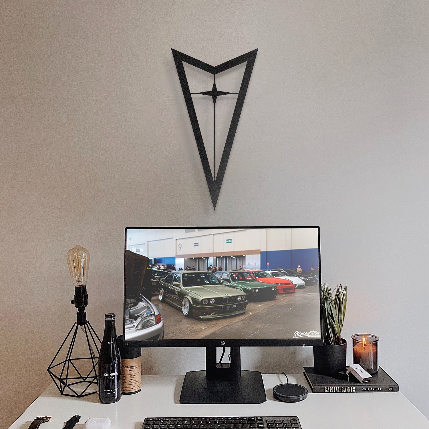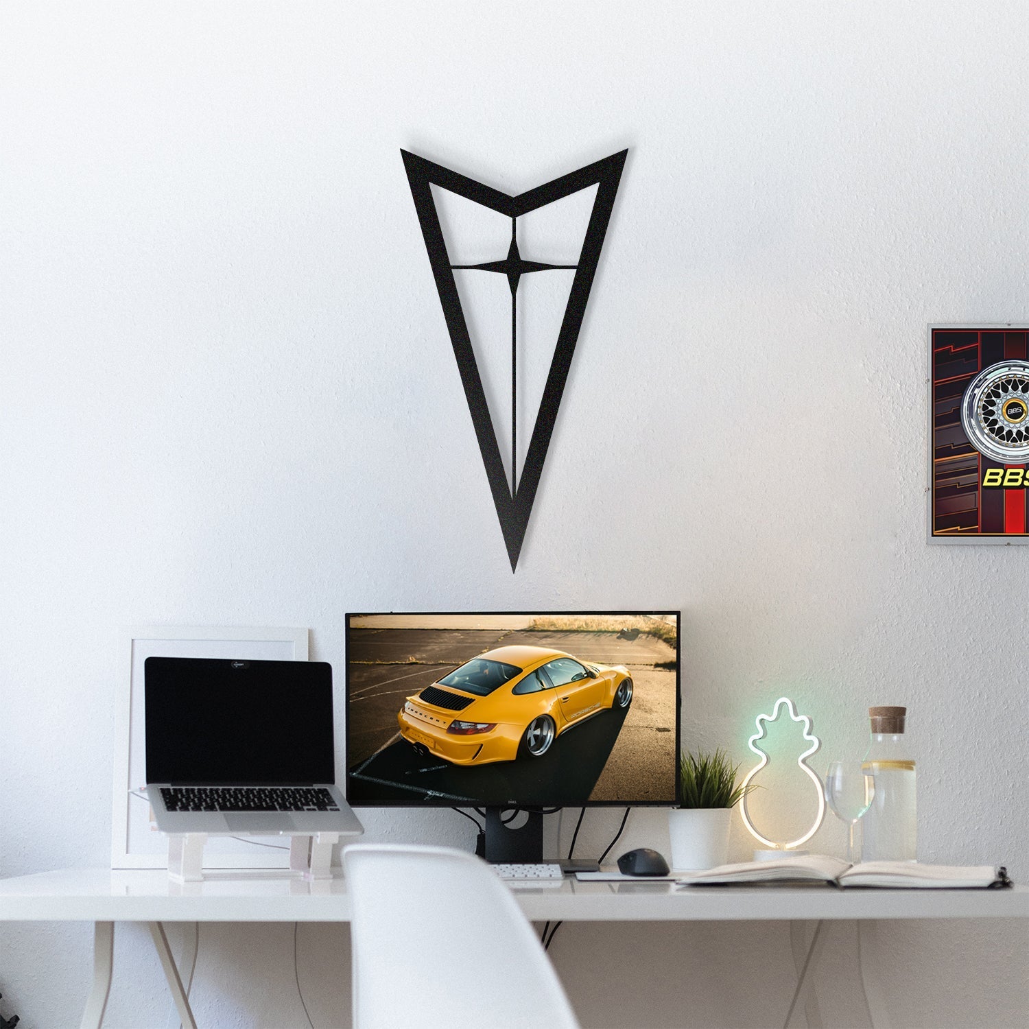 This Pontiac metal car emblem will turn any automotive enthusiast's home, garage, hallway, living room, bedroom, or office into a unique space, add a stylistic look and captivate petrolheads as well as visitors.