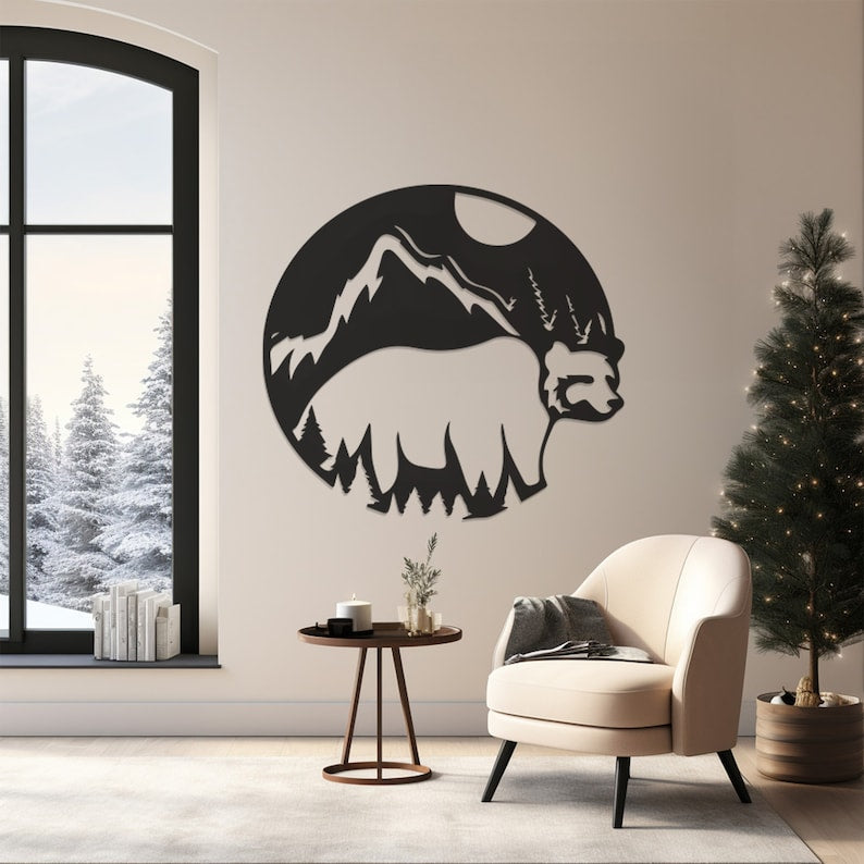 Rustic Bear Pattern Wall Art, Durable Metal Decor