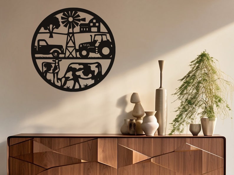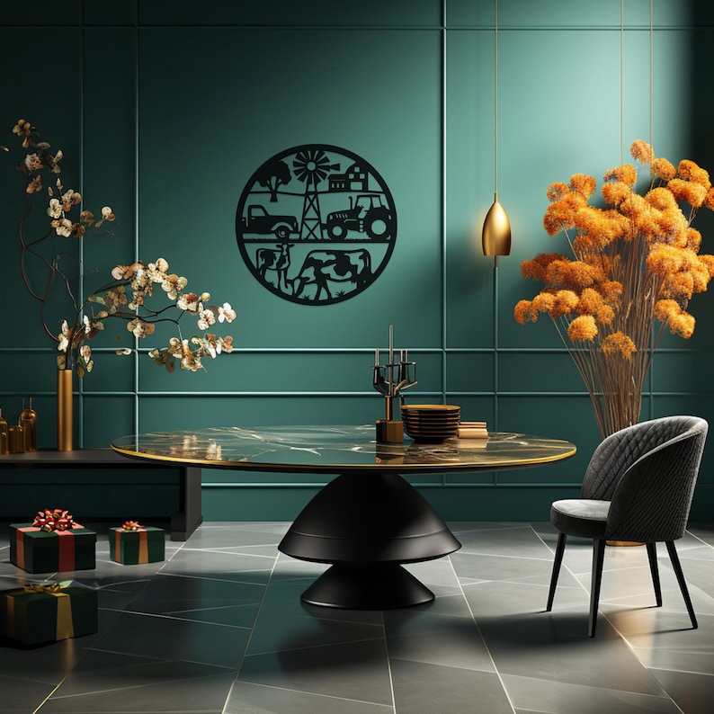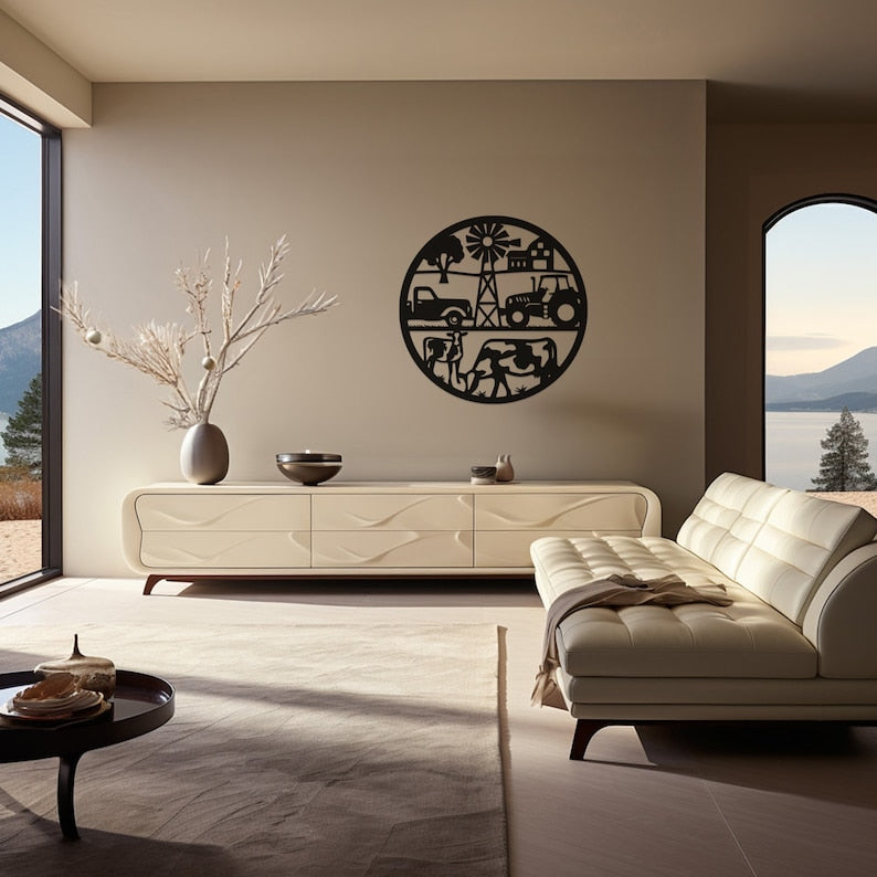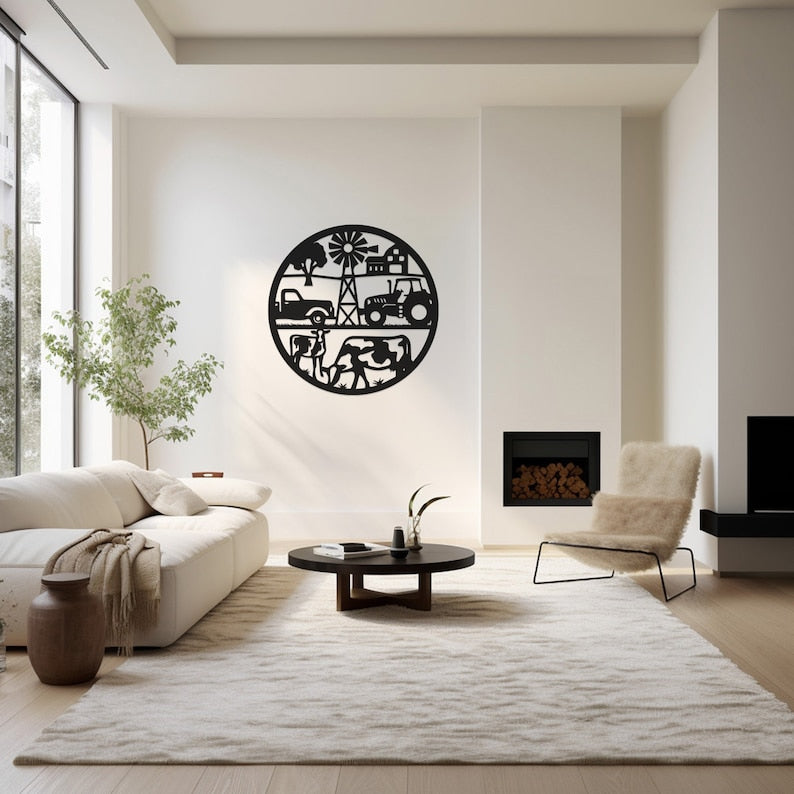 Rustic Farmhouse Scene Metal Wall Art, Vintage Country Style Decor for Living Room