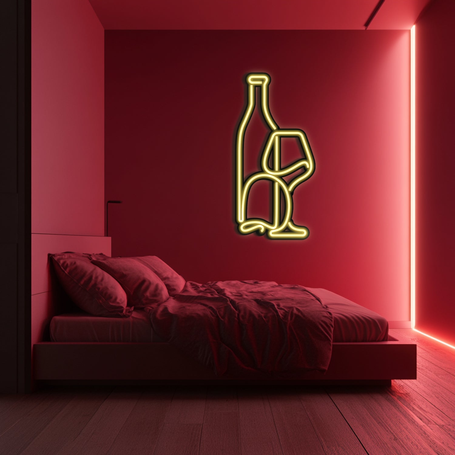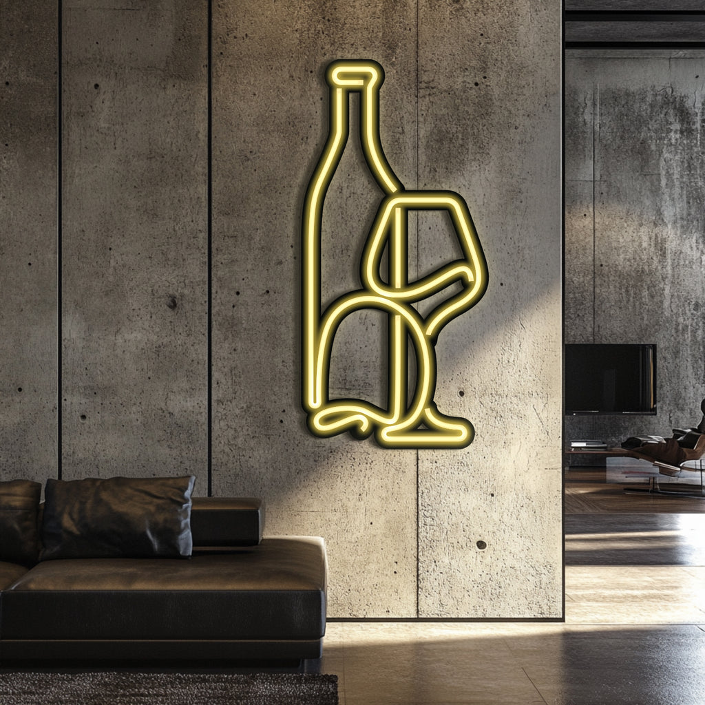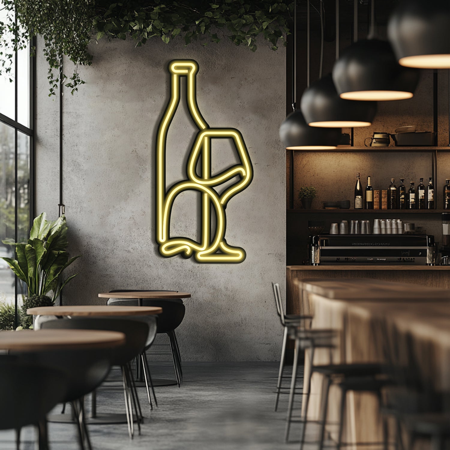 Wine Line Art Metal Neon Wall Art – Illuminate Your Space