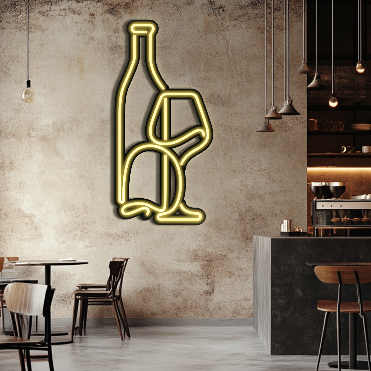 Add a vibrant glow to your walls with this Wine Line Art Metal Neon Wall Art. This unique piece combines precision laser-cut metal craftsmanship with eye-catching LED neon lighting, creating a stunning visual focal point for any room.